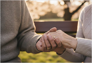 전 아내의 두 손을 잡으며 말합니다.